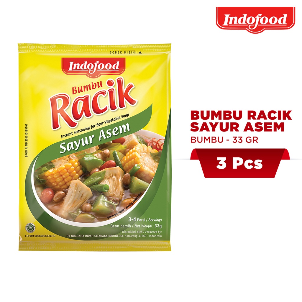 Bumbu Racik Indofood Sayur Asem - 3pcs terbuat dari bumbu dan rempah asli yang akan membuat sayur asem Anda tambah nikmat. Anda juga bisa menambahkan: