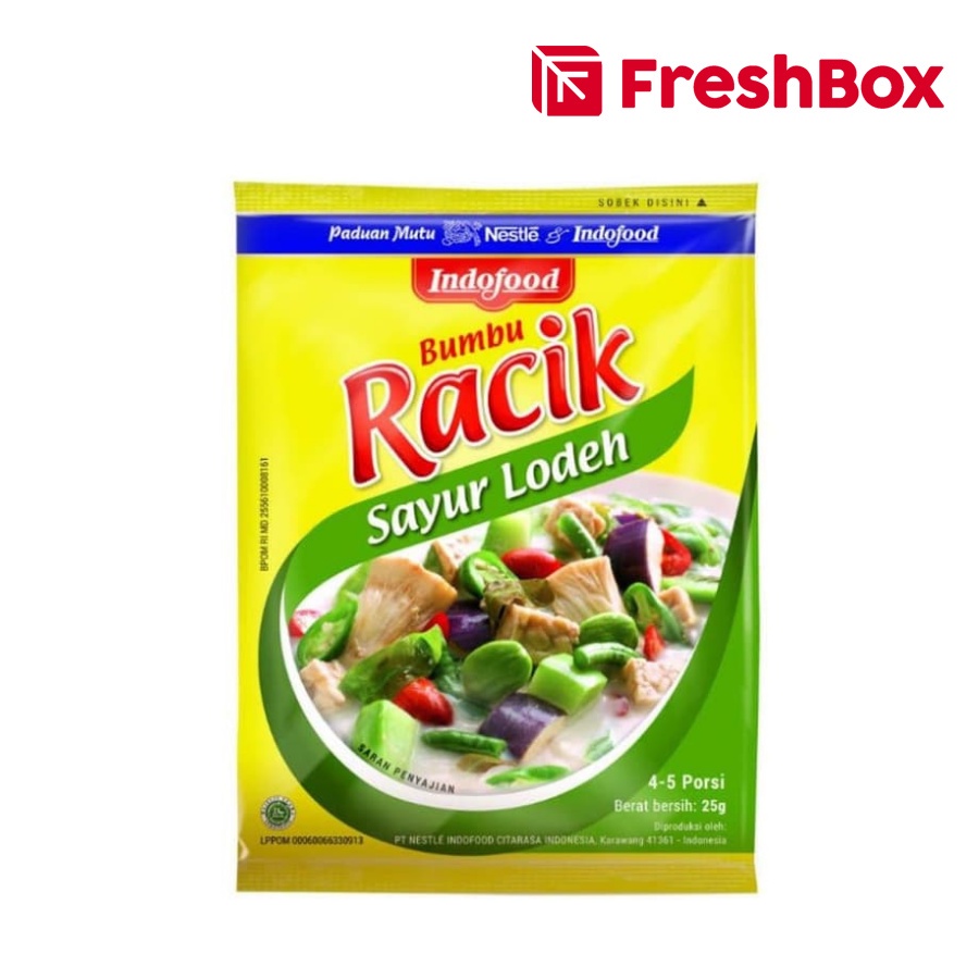 Indofood Bumbu Racik Sayur Lodeh 25gr merupakan bumbu instan untuk membuatsayur lodeh yang nikmat. Diproses secara higenis dan praktis : 43636 BPOM: MD 255610187161