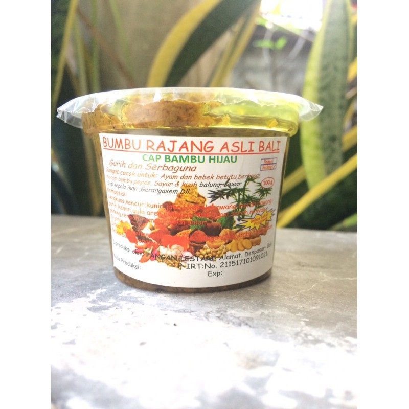 Bumbu rajang Bali serba guna yang dapat dijadikan sebagai bumbu ayam atau bebek betutu, pepes, lawar, sayur dan kuah balung, be genyol, gerang asem, sop kepala ikan dan makanan Bali lainnya