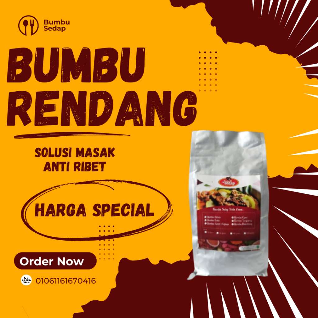 BUMBU SEDAP solusi masak anti ribet. Dengan kandungan rempah yang melimpah dan juga cita rasa yang pas membuat olahan masakan rendang menjadi lebih lezat.