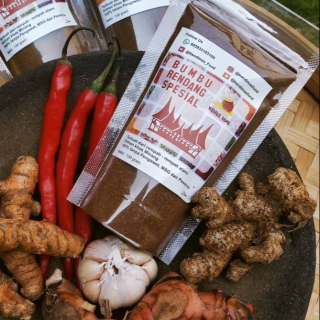 Bumbu Rendang Spesial Kendimas Food terbuat dari rempah-rempah berkuitas premium dan diracik secara turun-temurun sehingga terjamin kualitasnya. Bumbu Rendang Spesial Kendimas Food akan mempermudah kita dalam mengelola bahan baku menjadi rendang dan masakan khas Minang lainnya sehingga masakan rasanya terjamin kelezatannya. Bumbu ini 100% menggunakan rempah alami tanpa zat pengawet, MSG dan zat pewarna.