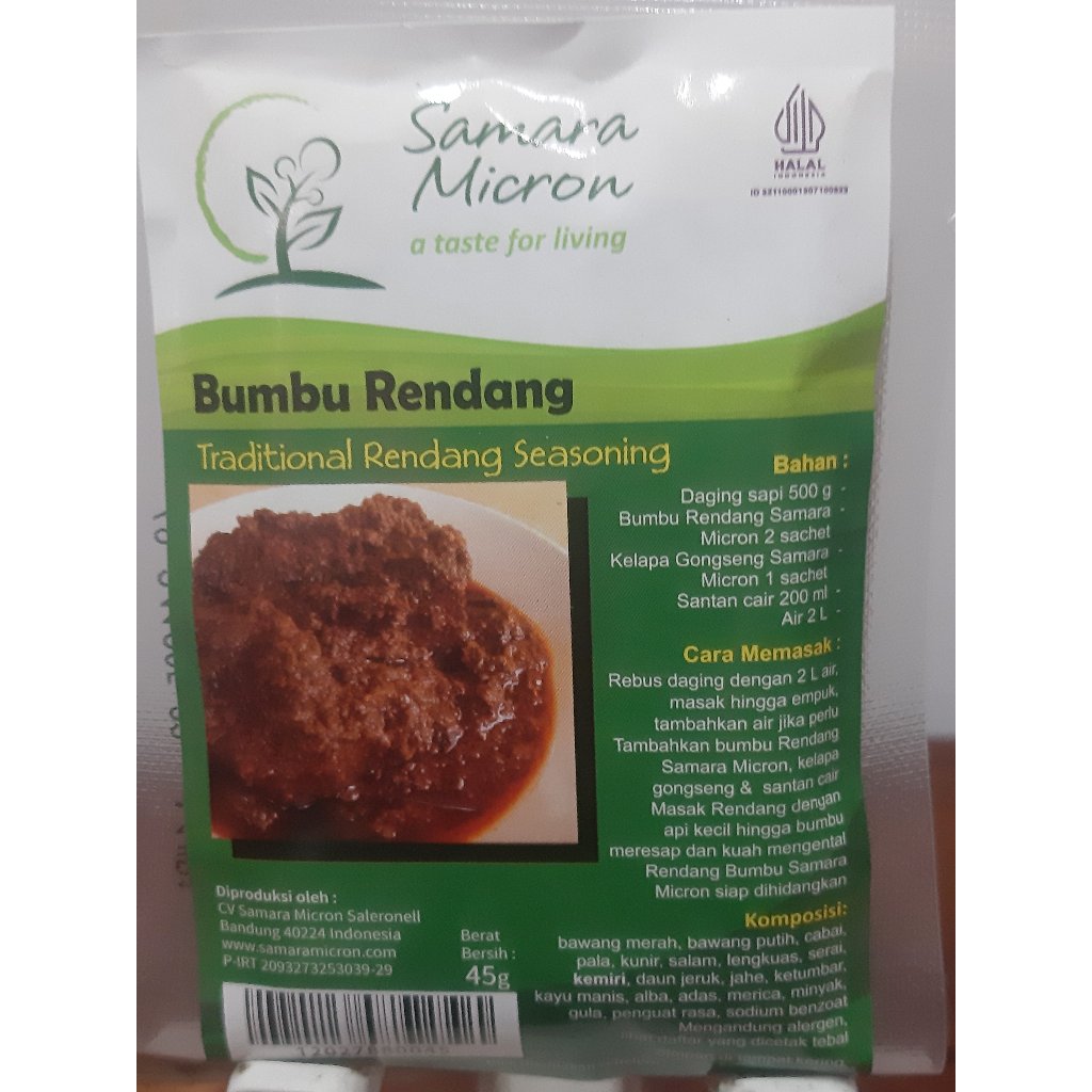Bumbu Racik dalam bentuk pasta siap digunakan (instan) di dalam masakan "Rendang" lezat anda, di kemas dalam sachet ukuran 45g, membuat proses memasak anda menjadi lebih sederhana dan cepat saji. Dibuat dari bahan asli, segar, dengan kualitas terbaik melalui proses produksi yang cermat dan higienis.