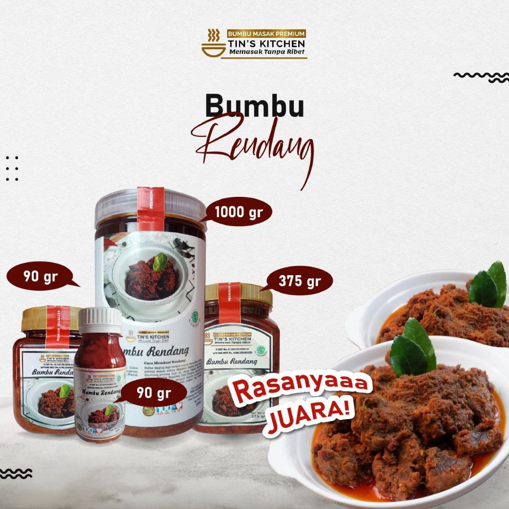 Rebus daging sapi sampai empuk, kemudian potong-potong sesuai selera. Masukan daging yang sudah di potong-potong tadi ke dalam wajan bersama dengan Bumbu Rendang Tin's Kitchen, tambahkan air secukupnya, aduk sampai bumbu mengental. Setelah bumbu mengental, angkat dan rendang siap di sajikan.