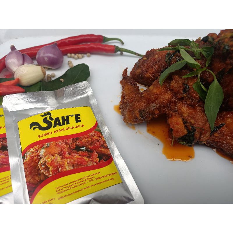 Bumbu Rica Rica Pedas SAH'E terbuat dari rempah rempah segar Indonesia. Tanpa bahan pengawet dan pewarna buatan. Dengan cabe segar asli Pedasnya Nampol