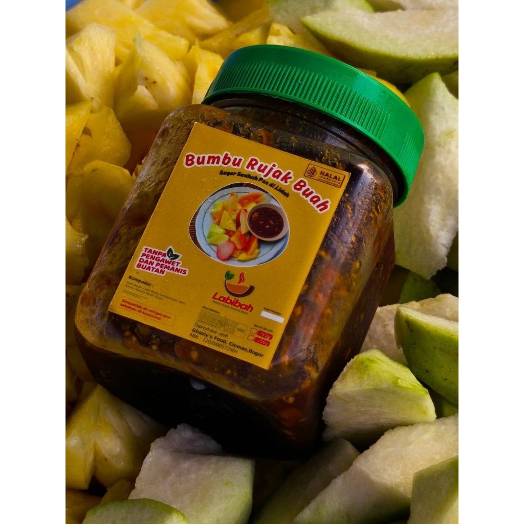 Bumbu Rujak Buah Labibah merupakan bumbu rujak coel yang dibuat dari bahan pilihan dan mengandung gula aren.