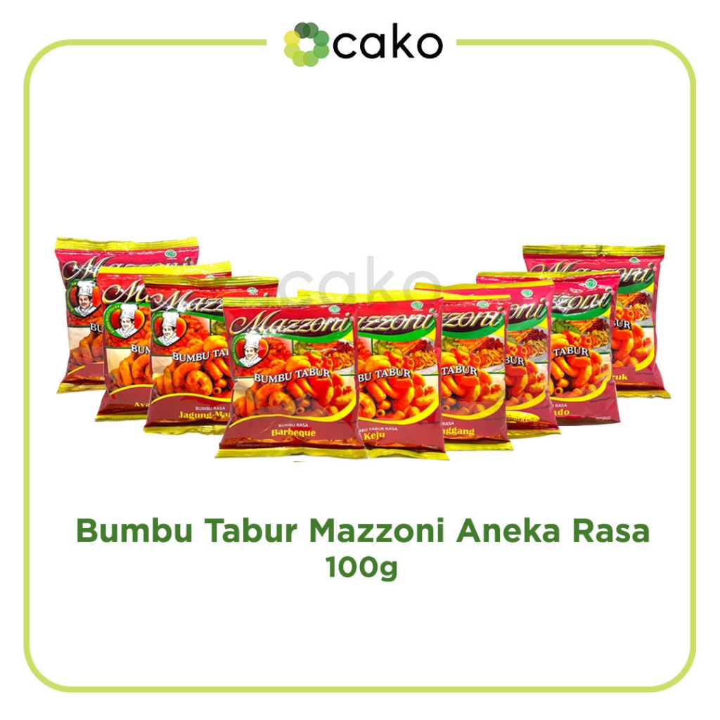 Bumbu Tabur MAZZONI diracik dengan bahan baku pilihan yang berkualitas dan diproduksi dengan higienis menjadikan MAZZONI memiliki rasa yang enak dan menjadi pilihan tepat untuk camilan seperti keripik, kerupuk, aneka gorengan, dan bakaran.