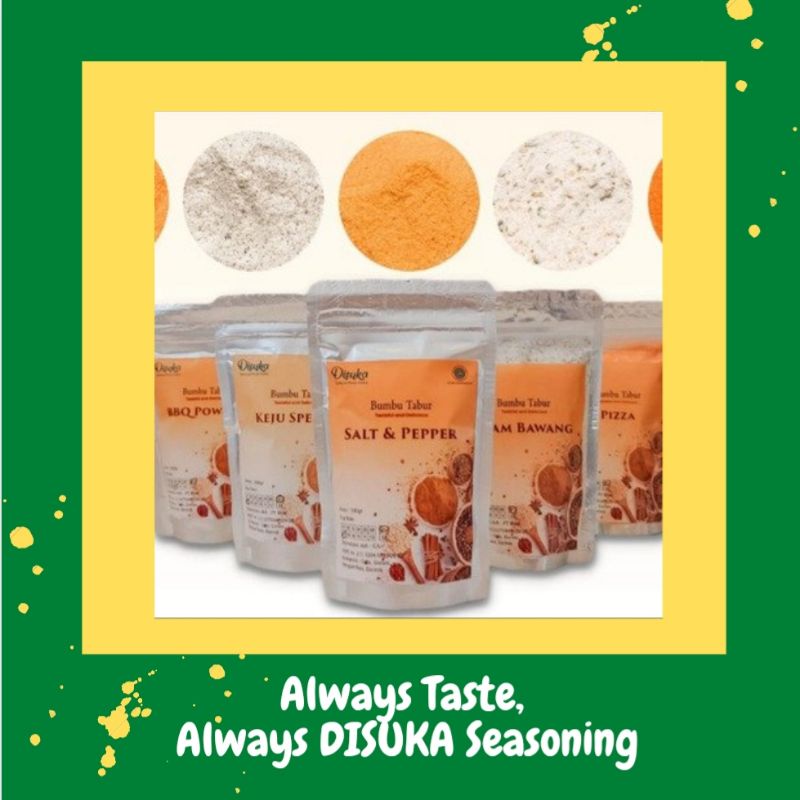 Bumbu Tabur cocok digunakan sebagai taburan rasa aneka keripik, (seperti keripik singkong, keripik usus, keripik kentang, keripik jamur, keripik tempe, rengginang, kerupuk, macaroni, lidi, dll). Atau dapat ditaburkan di berbagai macam cemilan / gorengan (seperti kentang goreng, Ayam Crispy, Ayam Shihlin, tahu bulat, bakso goreng, singkong, pangsit, dll).
