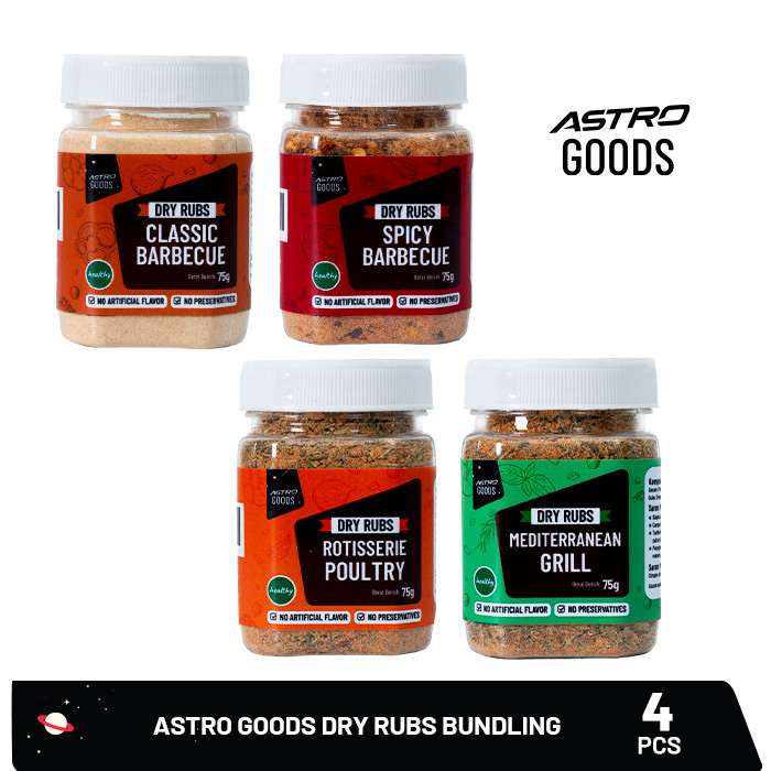 Jelajahi cita rasa yang autentik dengan Dry Rubs Astro Goods! Diracik dengan rempah pilihan. Cocok untuk daging, ayam, dan seafood, serta dapat digunakan dengan berbagai metode memasak seperti oven, bakar, dan goreng. Hadirkan kelezatan yang autentik dalam setiap suapan dengan Dry Rubs *PENTING!!