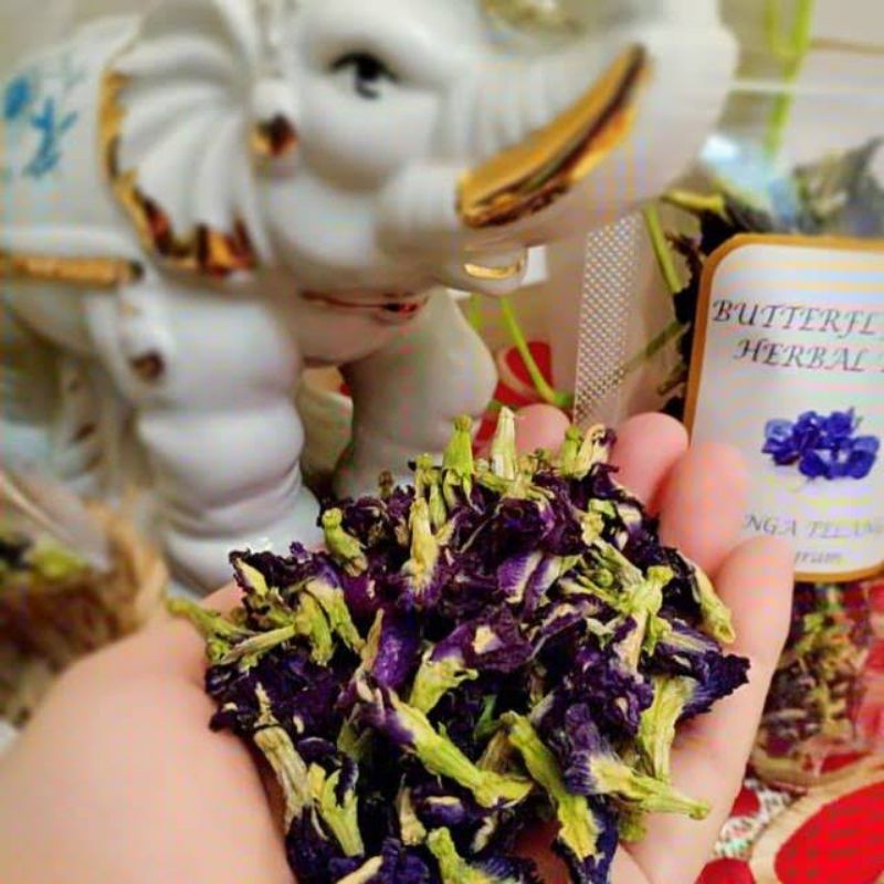 Bunga Telang kering, untuk diseduh sebagai teh atau pewarna biru alami pada makanan. Berat 5 gram