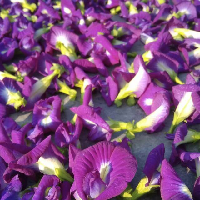 Bunga telang kering di konsumsi untuk kesehatan, anti oksidan tinggi, bisa dibuat minuman seperti minum teh.
