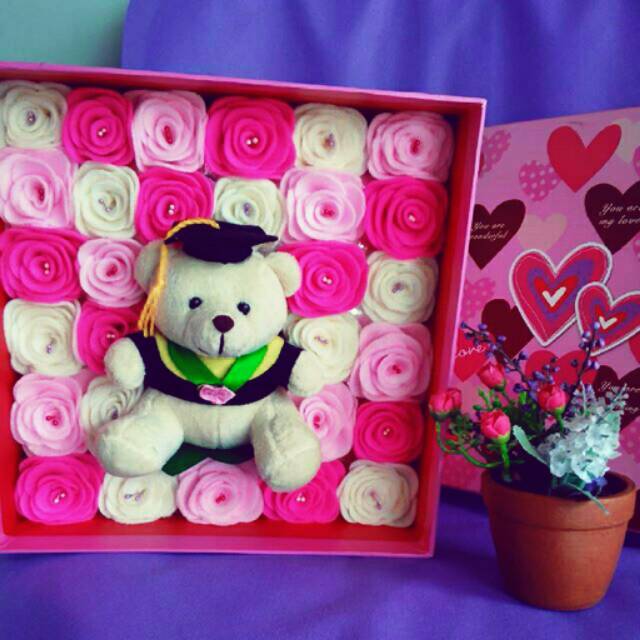 Bunga box + bear set wisuda/wedding #bungabox#bonekawedding