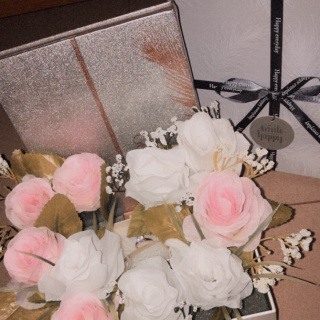 Bunga box dengan request cincin ditengahnya cocok untuk hadiah ulang tahun / anniversary. cek our ig: @micya.flowers #bungabox #bucketbunga #flowers