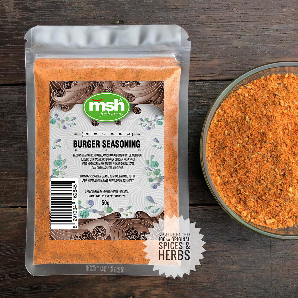 Burger Seasoning merupakan bumbu yang terbuat dari rempah-rempah alami, digunakan untuk membuat burger dengan rasa spicy yang nikmat.