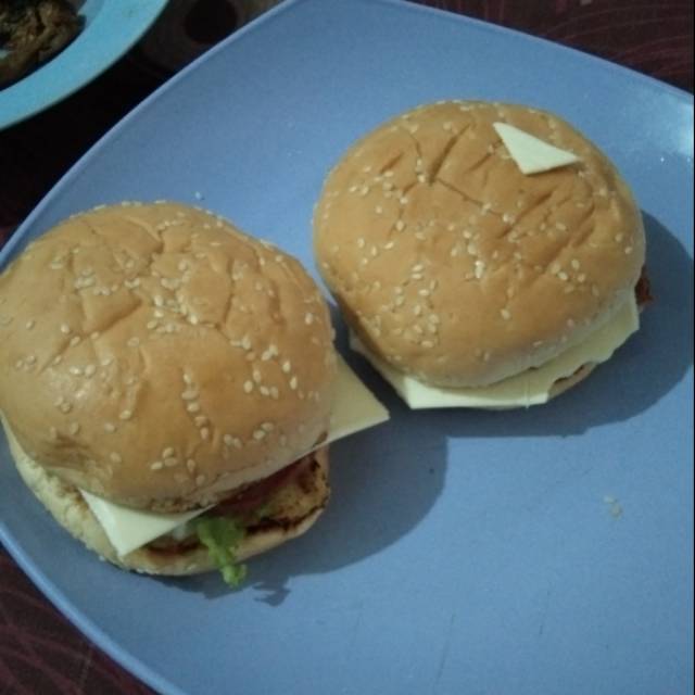 Kami juga menjual burger. Dengan topping keju di dalamnya. Dijamin enak dan ketagihan.