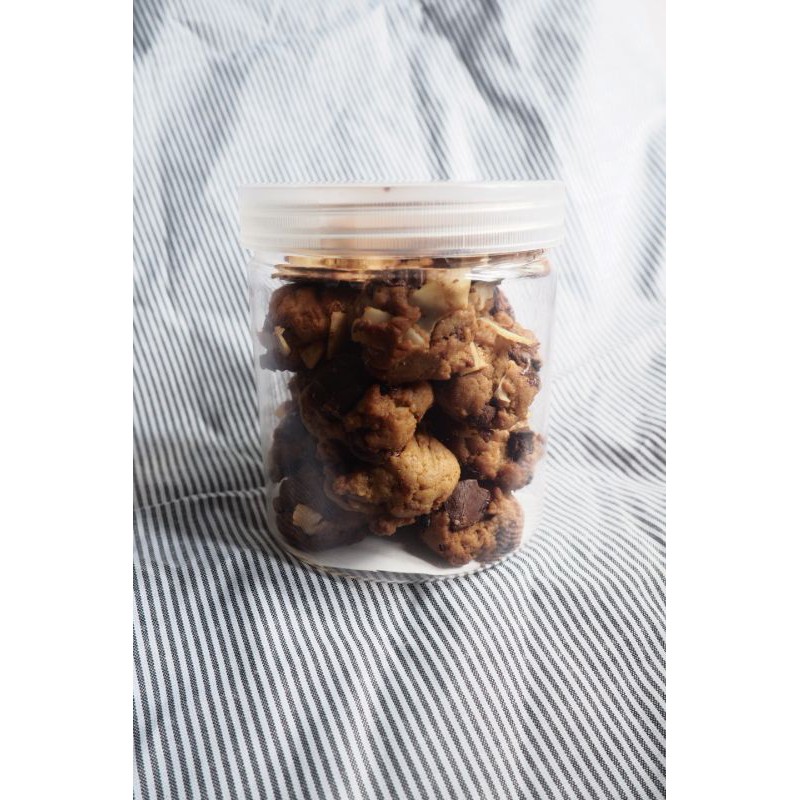 Cookies buatan dapur rumah kami dengan bahan berkualitas, full butter dengan campuran chocolate chips dan coconut flakes.