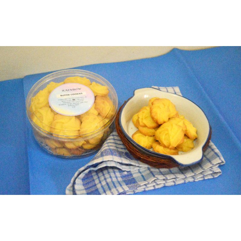 Butter cookies ini memiliki tekstur yang renyah. Wangi dan aroma butter sangat terasa dan juga rasa manisnya pun sangat pas. Dibuat menggunakan bahan-bahan premium dan tanpa menggunakan bahan pengawet.
