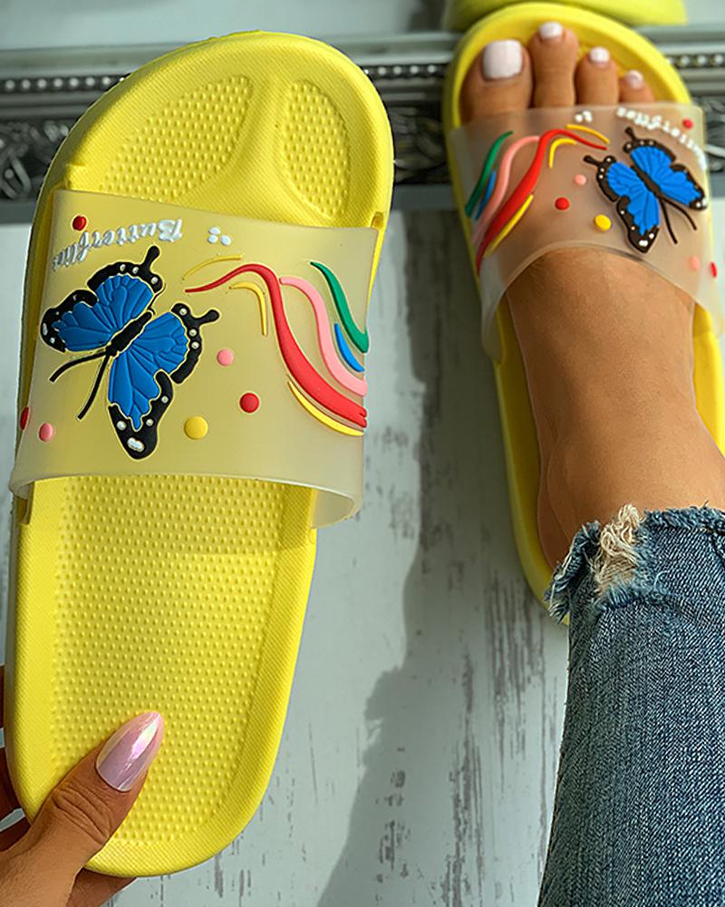 Butterfly Letter Pattern Slide Sandals, Yellow