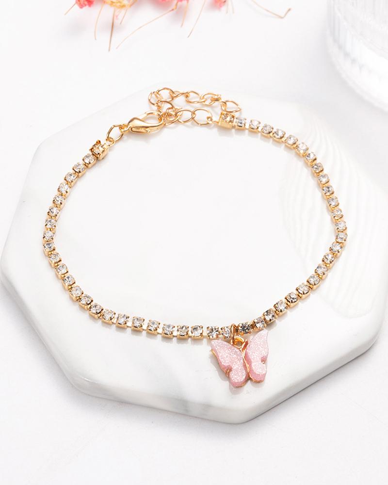Butterfly Pattern Rhinestone Anklet, Pink