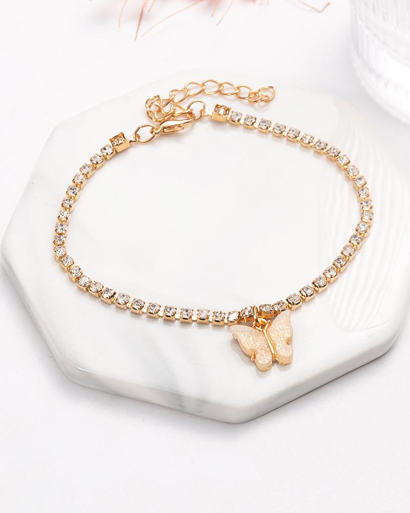 Butterfly Pattern Rhinestone Anklet, Yellow