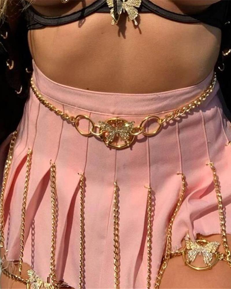 Butterfly Pattern Rhinestone Decor Waist Chain, Gold