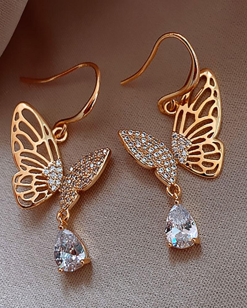 Butterfly Pattern Rhinestone Drop Earrings, Gold