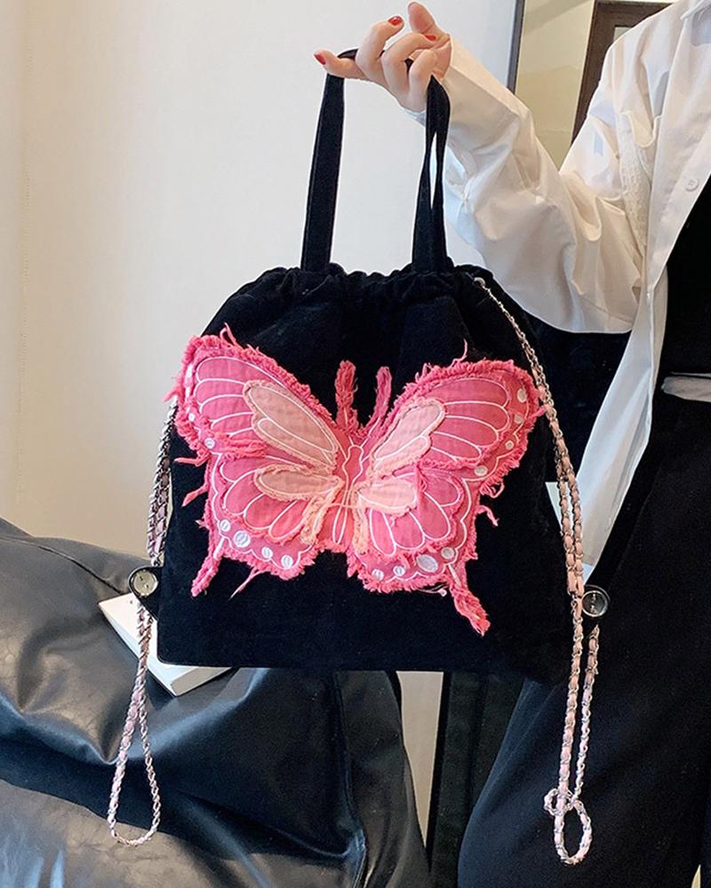 Butterfly Pattern Storage Backpack Fashionable Shoulder Bag, Black
