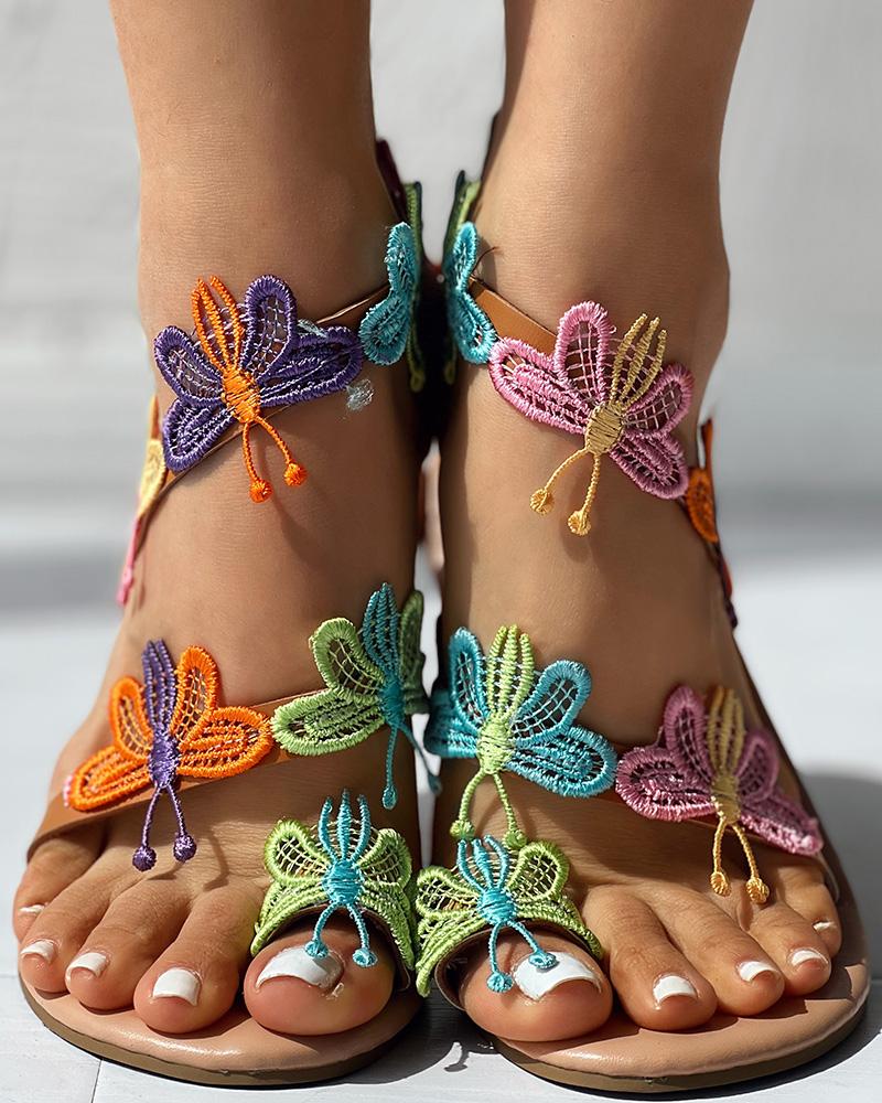 Butterfly Pattern Toe Ring Beach Sandals, Multicolor