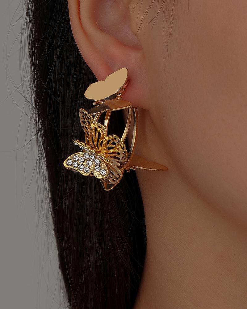 Butterfly Rhinestone Decor Earrings, Gold