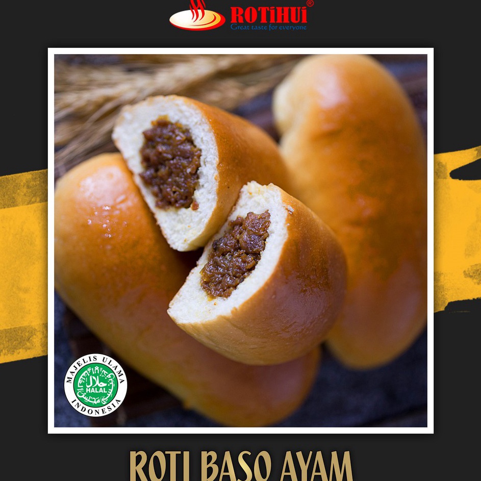 roti baso ayam adalah roti isi ayam cincang dengan bahan pilihan dan daging ayam pilihan tanpa lemak tanpa kulit, daging ayam dan semua produk rotihui bersertifikat halal