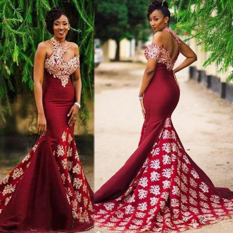 Burgundy African Sexy Evening Dresses Formal Party Wear Mermaid Prom Dress Trumpet robes de soirée Saudi Arabia Plus Size Gown, White