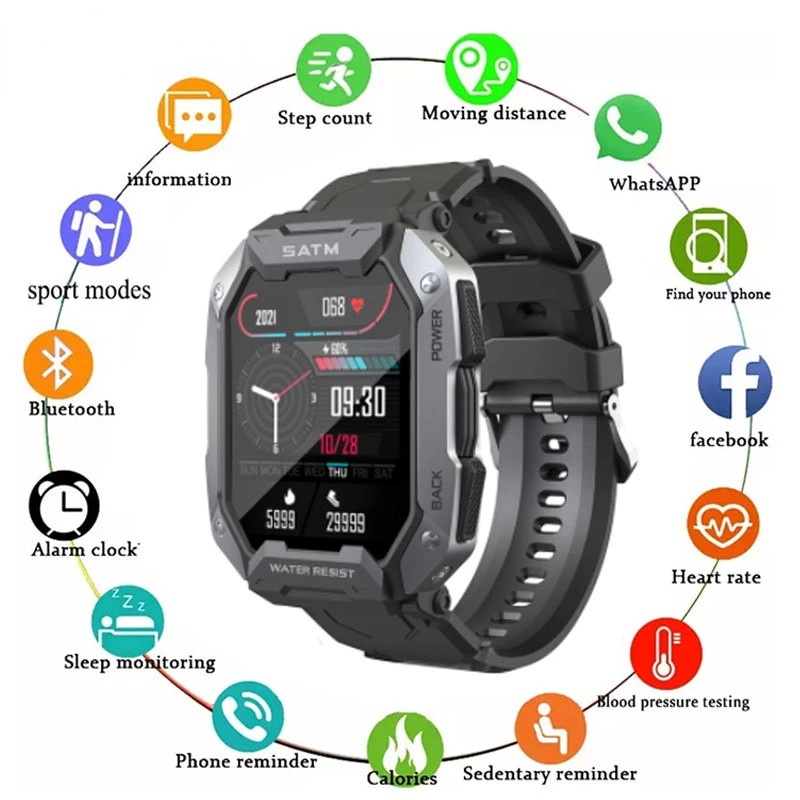 C20 военные Смарт-часы с большим черным экраном для улицы IP68 Водонепроницаемый пульсометр монитор уровня кислорода в крови спортивные Смарт-...