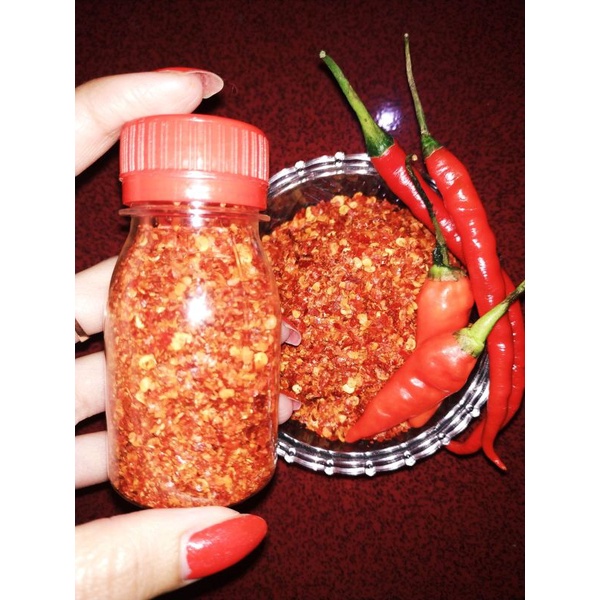 Terbuat dari cabe merah asli pilihan, digiling dan disangray, sudah diolah dgn bumbu jadi tidak pahit sama sekali. Rasanya super pedas, cocok untuk topping makanan apapun. Bisa dijadikan bahan chili oil tinggal disatukan dgn minyak bawang.