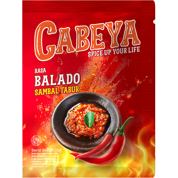 Cabeya Sambal Tabur rasa Baladonesia dibuat khusus untuk para pecinta pedas gurih yang autentik khas Nusantara. Dibuat dari cabai rawit, rempah-rempah, dan bumbu asli, Sambal Tabur ini menghasilkan rasa Balado yang memiliki cita rasa pedas, gurih, dan sedikit manis yang dapat menambahkan kenikmatan makan jadi berkali-kali lipat.