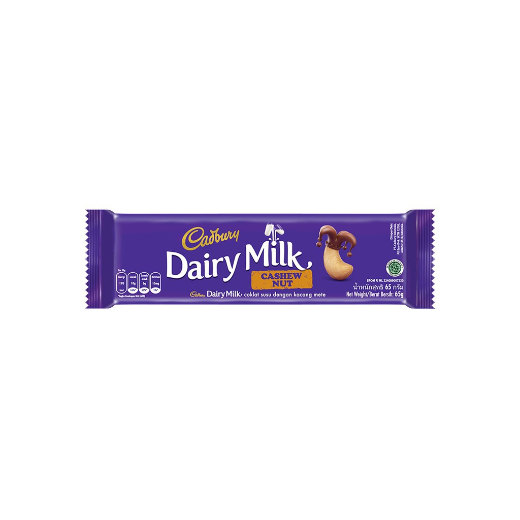 Coklat dengan segala kebaikan dan manfaatnya sudah tak asing lagi dijadikan makanan atau minuman favorit semua orang dari segala usia. Banyak produk coklat dengan mudah kita jumpai di toko atau swalayan. Hadir di Indonesia sejak tahun 1981, Cadbury telah menjadi salah satu produk coklat andalan yang menemani para penikmat coklat premium. Kini Cadbury berinovasi dengan menghadirkan berbagai filling lezat yang akan memberi citarasa yang tak terlupakan dalam setiap gigitannya. Cadbury Cashew Nut 65g merupakan salah satu varian coklat batang dari Cadbury Dairy Milk series. Coklat Cadbury Dairy Milk dibuat menggunakan resep rahasia original dengan memadukan coklat, susu, dan bahan-bahan pilihan berkualitas sehingga menghasilkan coklat batang lezat dengan kemurniaan dan kesempurnaan rasa. Cadbury Dairy Milk memiliki kandungan susu lebih banyak dibanding coklat lainnya, sejumlah satu setengah gelas susu pada tiap bar-nya. Cadbury Cashew Nut dilengkapi kacang mete pada kelezatan cokelatnya yang menambah citarasa coklat dan memberi sensasi istimewa yang tak terlupakan