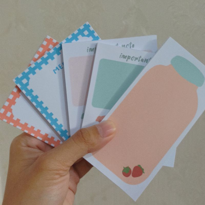 Sebelum ide berlianmu menguap gitu aja, coba deh mulai langsung taruh ide kamu di memo pad. Aku punya memo pad loh. Ukurannya genggam-friendly alias bisa kamu bawa kemana mana atau cukup disimpan di meja kecil samping kasurmu!