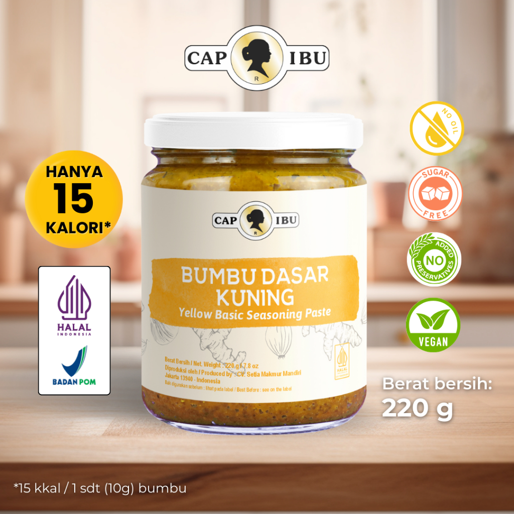 Bumbu Dasar CAP IBU adalah bumbu siap pakai yang terbuat dari bahan alami tanpa minyak, gula, dan pengawet, dengan sedikit garam Himalaya untuk rasa yang sehat dan alami.