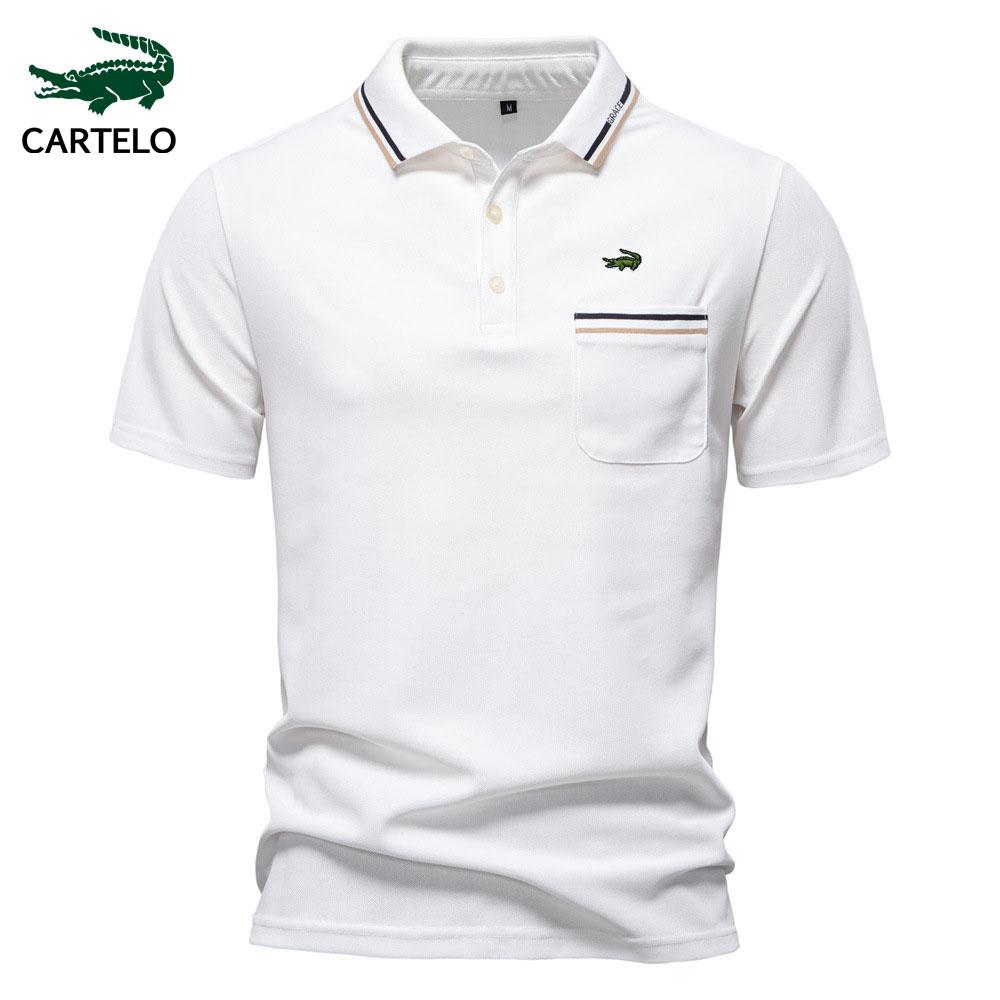CARTELO 2025 Лето Вышитая Новая Рубашка Поло с Короткими Рукавами Мужская Полосатая Воротник Деловой Повседневный Короткий Рукав Поло Мужской Топ S