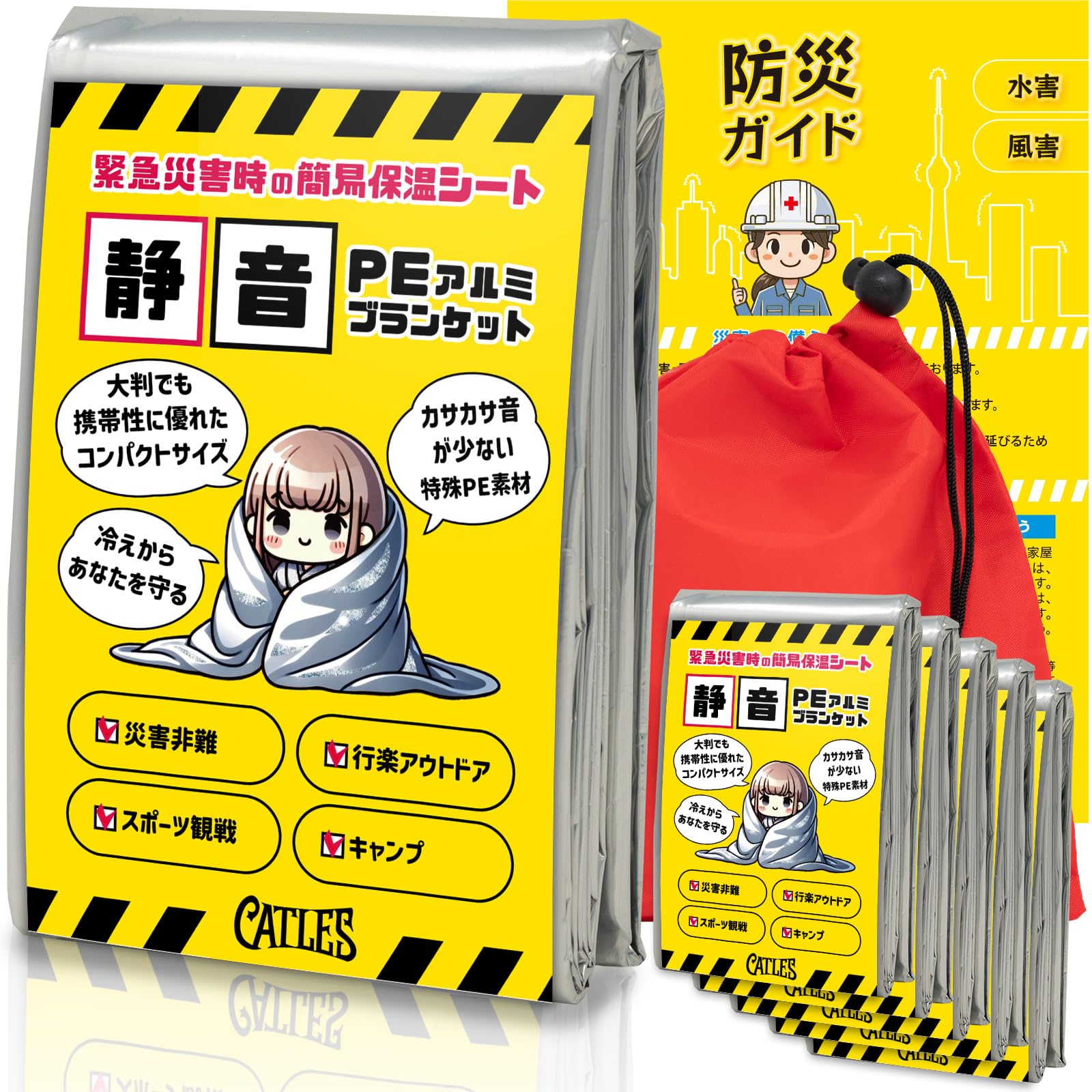 CATLES Выживание Аварийный Алюминиевый Катастрофа Алюминиевый Предотвращение Катастроф Сумка для хранения Набор из 5 Лист, Лист, Лист, Предотвращение, Одеяло, ПЭ,