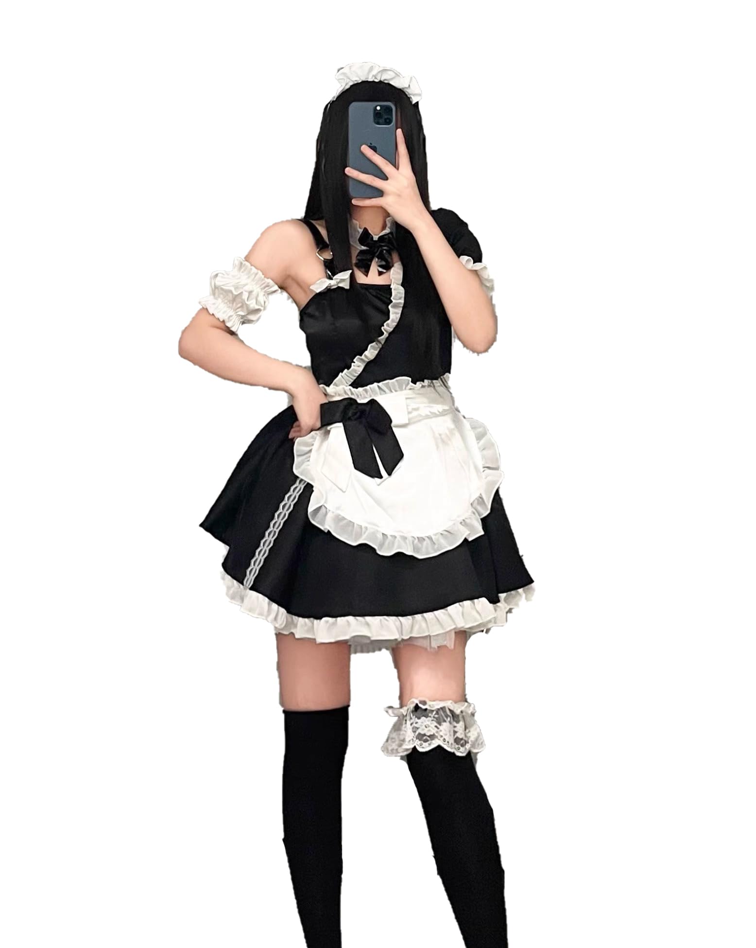 CAWILXHA Горничная Идеально подходит для школы и церемоний поступления в школу Размер Костюм, Косплей, Хэллоуин, Костюм с открытыми плечами, Женский фартук, Милый, Моэ, чёрный
