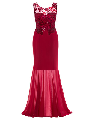CAZDZY Вечернее Платье-Русалка с Аппликациями и Круглым Воротником