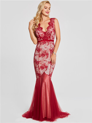 CAZDZY Кружевное Вечернее Платье с V-Образным Воротником, Оголяющее Спину