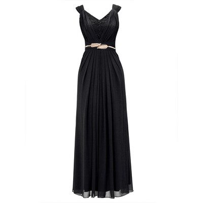 CAZDZY кружевное плиссированное шифоновое длинное вечернее платье - V образный воротник