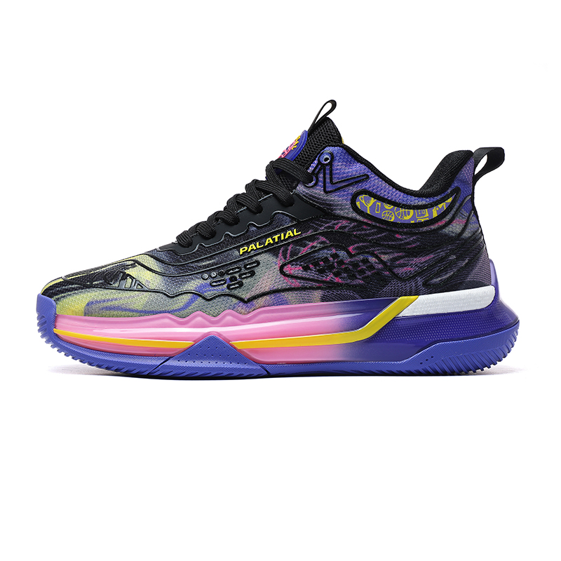 PALATIAL Мужские баскетбольные кроссовки Aurora высокие черные зелёно-белые, аква сине-чёрные, розово-красные светло-зелёные — чёрные розово-красные, цвет Black Rose Red