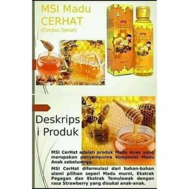 MSI Cerhat diformulasi dari bahan-bahan alami pilihan seperti madu murni, ekstrak Pegagan dan ekstrak Temulawak dengan rasa Stawbery yang sangat disukai anak2.