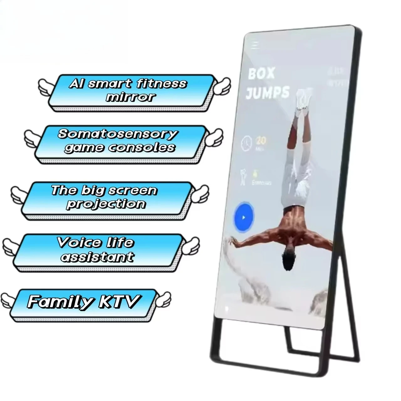 CH Android Smart Touch Screen OLED Fitness Mirror Floor Stand Voice Control HD Video For Indoor Exercise Gym Use 21.5/32/43 Inch