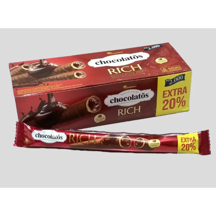 CHOCOLATOS RICH 1BOX ISI 12 / CHOCOLATOS RICH COATED WAFER ROLL DUS ISI 12PCS COKLAT