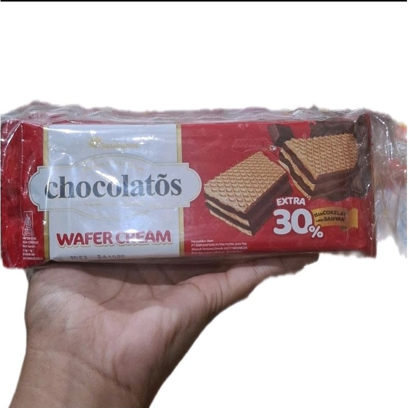 Merek Chocolatos, pertama kali diluncurkan pada tahun 2008, merupakan inovasi dari Garudafood untuk menghadirkan wafer stik yang lebih besar dan isi krim cokelat yang lebih padat. Perpaduan antara wafer stik dan krim cokelatnya memberikan cita rasa serta kuasan tersendiri dalam menikmati wafer stik yang berbeda dari produk yang tersedia di pasar. Chocolatos juga telah mengembangkan produknya ke kategori minuman serbuk rasa cokelat dan cokelat putih green tea latte sebagai inovasi baru di minuman serbuk cokelat. Kenikmatan cokelat dari Italia menjadi keunggulan dari produk Chocolatos ini.
