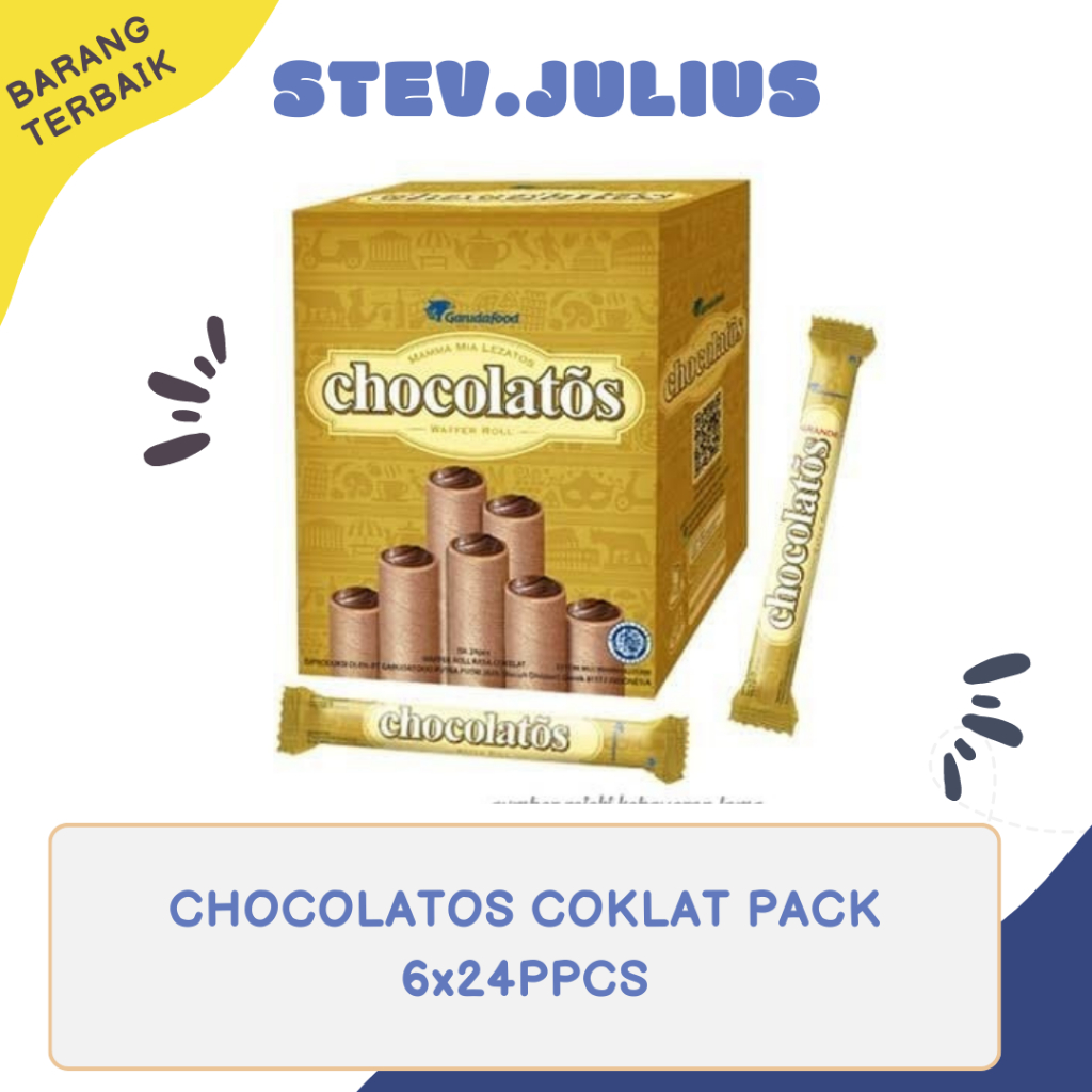 Kombinasi sempurna antara wafer cokelat stick yang renyah dan krim cokelat yang padat dengan cita rasa khas Italianya membuat Chocolatos menjadi makanan ringan yang digemari di seluruh Indonesia. Dikemas dgn kemasan mini pack bernetto 27 gram. Cocok dijadikan cemilan