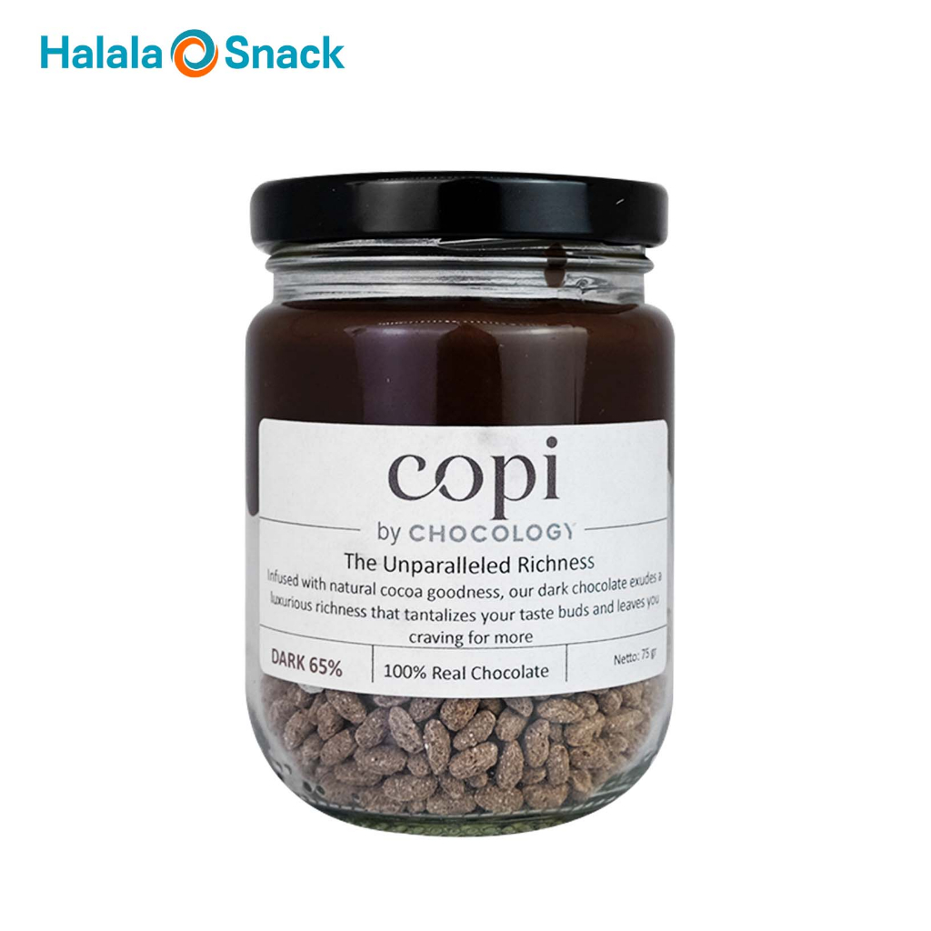 COPI adalah COKELAT JAR yang terbuat dari lelehan 100% pure chocolate yang dipadukan dengan renyahnya rice crispy premium grade dalam satu jar kaca yang menggugah selera, rasakan kebahagiaan dan semangat yang meningkat dalam setiap suapan jar COPI.