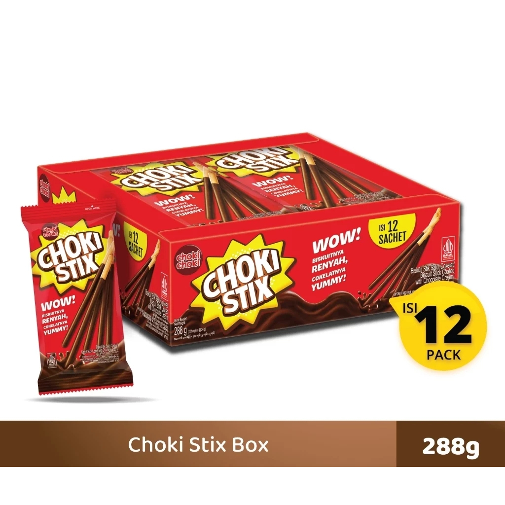 Adalah Choki Stix, varian lain brand Choki Choki dari Mayora. Produksi PT. Mayora Indah Tbk - Jakarta, berupa biskuit2 renyah berbentuk stik bersalut cokelat Choki Choki yg sudah mantap melegenda enaknya. Dijual dalam kemasan 1 kotak berisi 12 bks kecil Choki Stix dimana 1 bksnya ber netto 27 gr. Cemilan mantap dan cocok buat bekal anak anda ataupun teman beraktifitas sehari2. Beratribut lengkap BPOM RI dan Halal MUI. Silahkan diorder :)